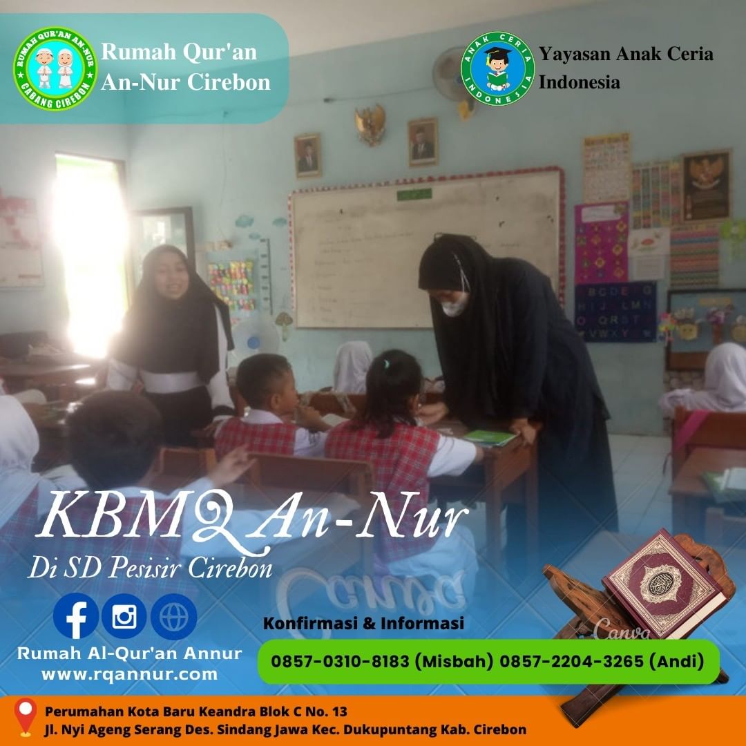 Alhamdulillah guru-guru dari Rumah Qur’an An-Nur seperti biasa setiap hari senin dan kamis melaksanakn Kegiatan Belajar Mengajar Qur’an ( KBMQ ) di SD Pesisir Baru Cirebon.