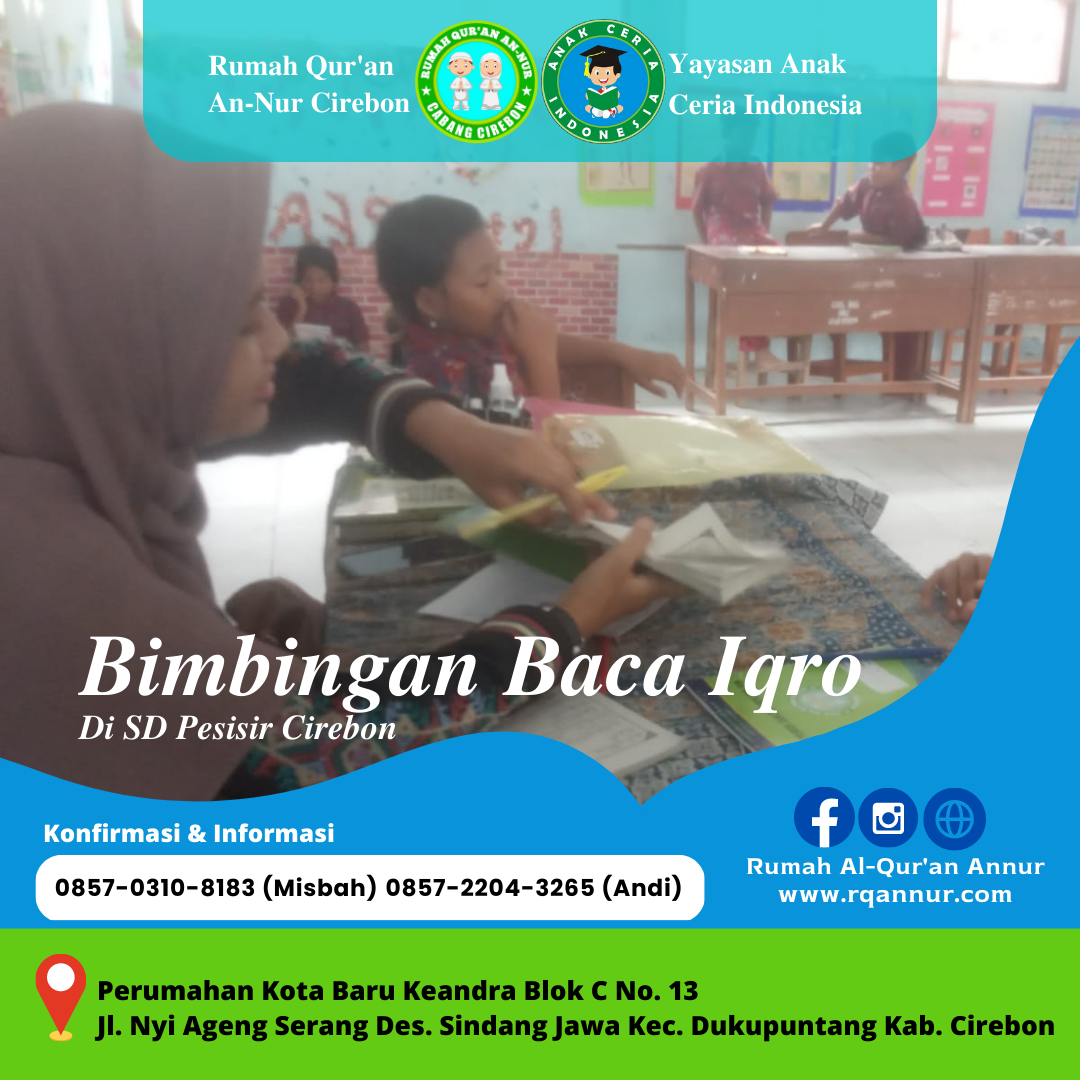 Rumah Qur’an An-Nur : Bimbingan Belajar Al-Qur’an بِسْمِ اللّٰهِ الرَّحْمٰنِ الرَّحِيْمِ Assalamualaikum Sahabat An-Nur ceria Alhamdulillah berkah Jiyadatul Khoir seperti biasa setiap hari senin ini kaka-kaka dari Rumah Qur’an An-Nur memberikan bimbingan Belajar Al-Qur’an di SD Pesisir Kota Cirebon. alhamdulillah semoga kegiatan mulia ini menjadi lantaran diturunkannya Rahmat dan barokah oleh Allah SWT kepada kita… Continue reading KBMQ AN-NUR di SD Pesisir Kota Cirebon