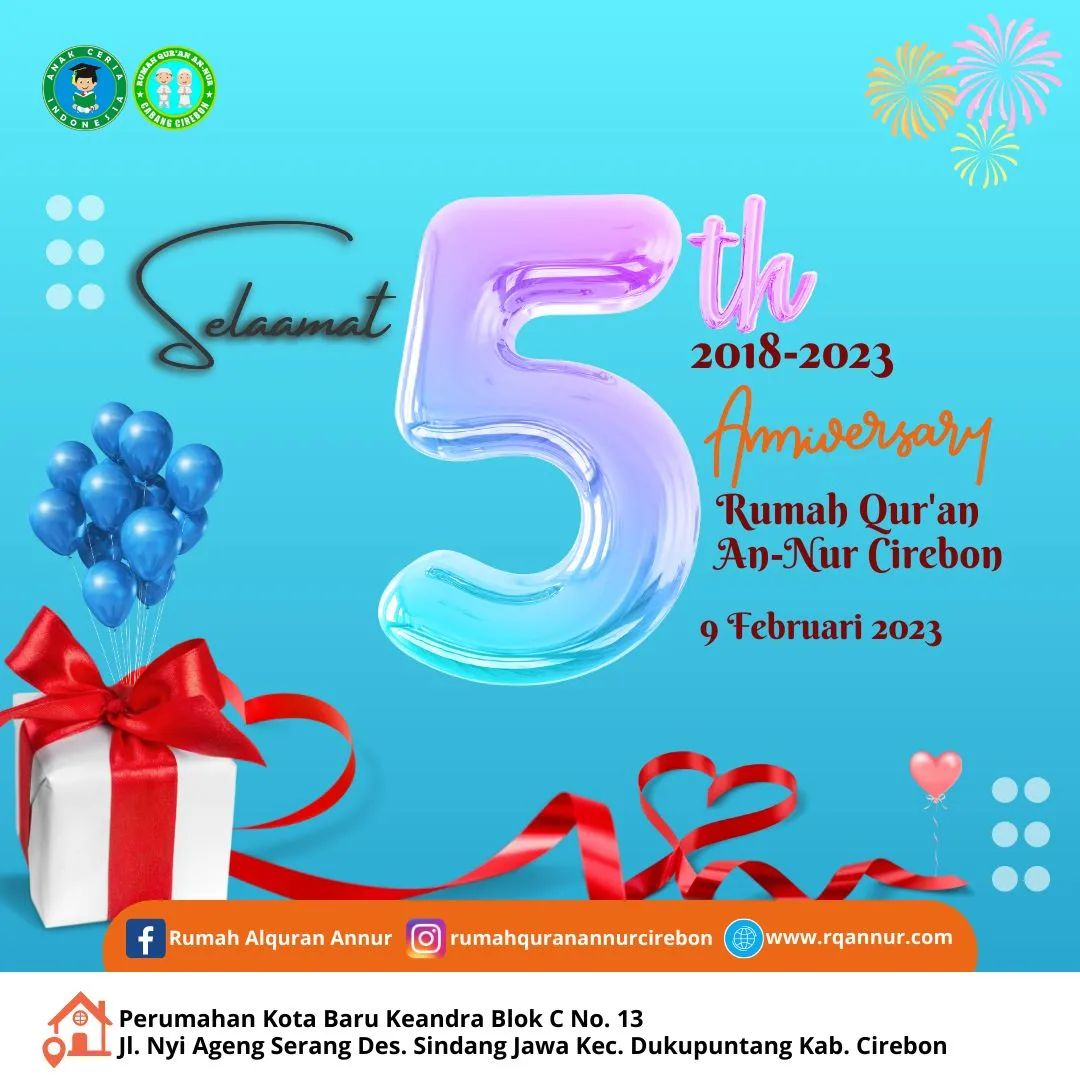 Rumah Qur’an An-Nur : Anniversary ke 5 Tahun مَبْرُوْكْ اَلْفَ مَبَرُوْكْ عَلَيْكَ مَبْرُوْك مَبْرُوْكْ اَلْفَ مَبَرُوْكْ عَلَيْكَ مَبْرُوْك Selamat Mensyukuri 5 tahun Anniversary Rumah Qur’an An-Nur Cirebon. Rumah Qur’an Alhamdulillah sudah menjadi bagian dalam memberikan pelayanan pendidikan Al-Qur’an secara Gratis untuk kemajuan pendidikan Al-Qur’an khususnya di Kota Cirebon. ini merupakan tugas mulia yang insyaallah akan… Continue reading 5 Tahu Anniversary Rumah Qur’an